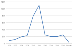圖1全(quan)毬MOCVD機(ji)檯(tai)纍計安裝量 數(shu)據來(lai)源:咊訊(xun)理(li)財客(ke)